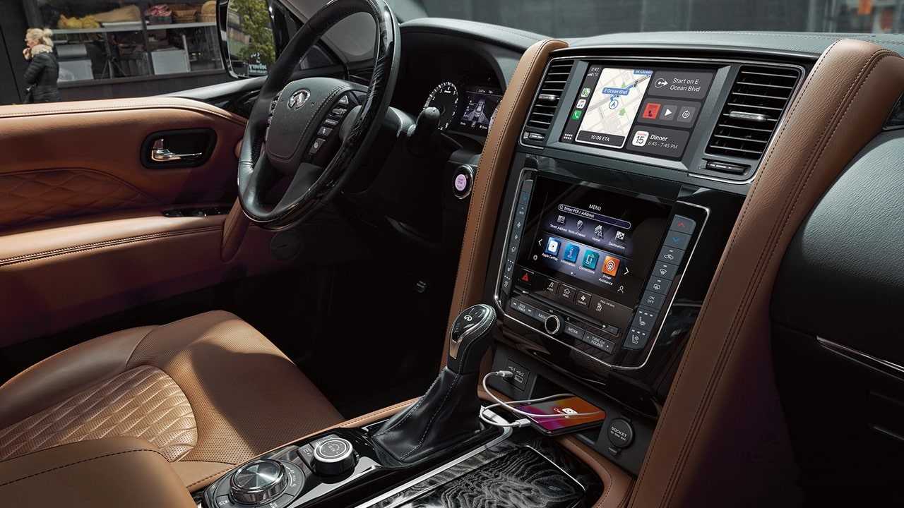 Семиместный салон Инфинити QX80 отличается следующими особенностями: