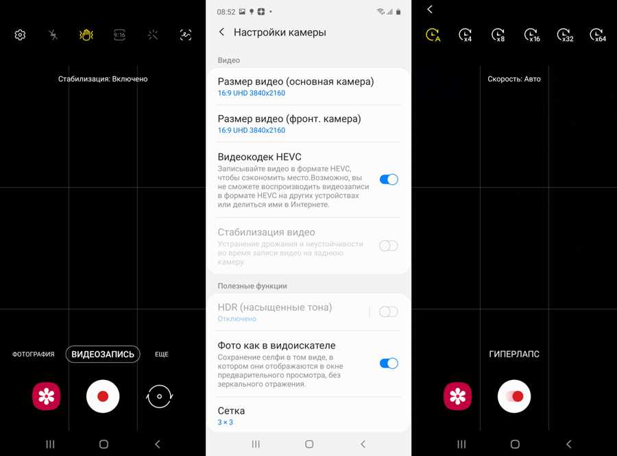 Для плавной съемки динамических сцен на основную камеру тылового фото-модуля при разрешении FHD можно воспользоваться стабилизацией Super Steady.