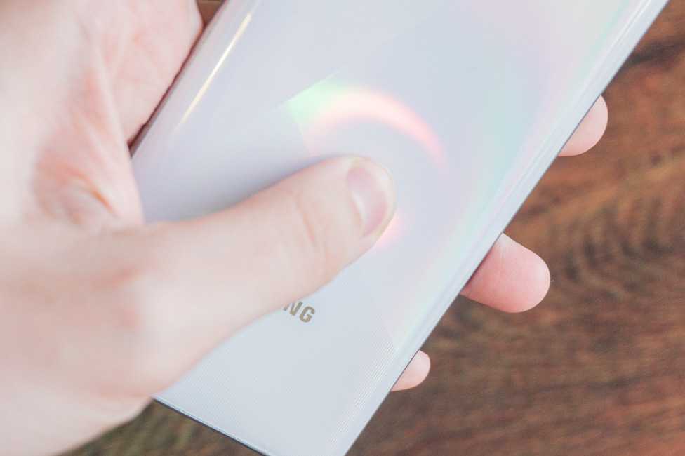 Для разблокировки смартфона наиболее комфортно использовать распознавание лица с помощью фронтальной камеры. В этом случае предварительная активация опции «Повышение яркости экрана» понадобится при недостатке освещения. Интересно, что зарегистрировать с помощью дактилоскопического сканера, встроенного в экран, можно всего три отпечатка пальцев. Из-за низкого расположения контактной площадки, для разблокировки удобнее использовать папиллярные узоры свободной от смартфона руки. Сохранение данных лица и отпечатков пальцев может пригодиться для подтверждения личности в интернете и других поддерживаемых приложениях (Samsung Pass).