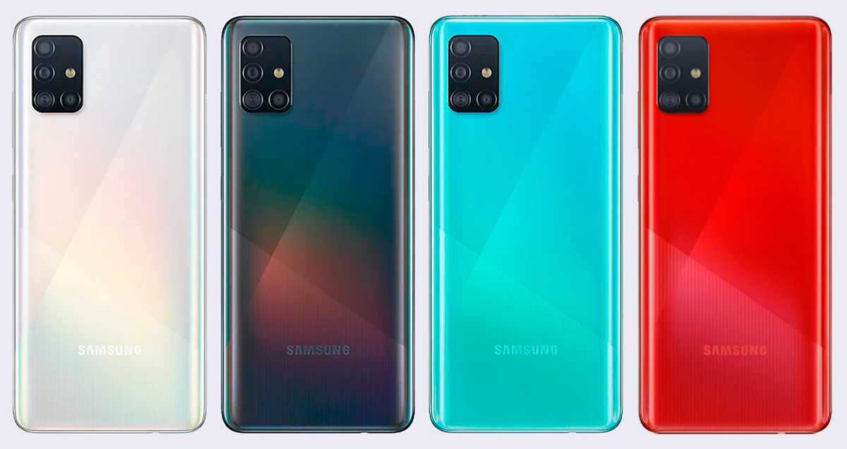 Цветовых вариантов Samsung Galaxy A51 предлагается четыре: белый, черный, голубой и красный.