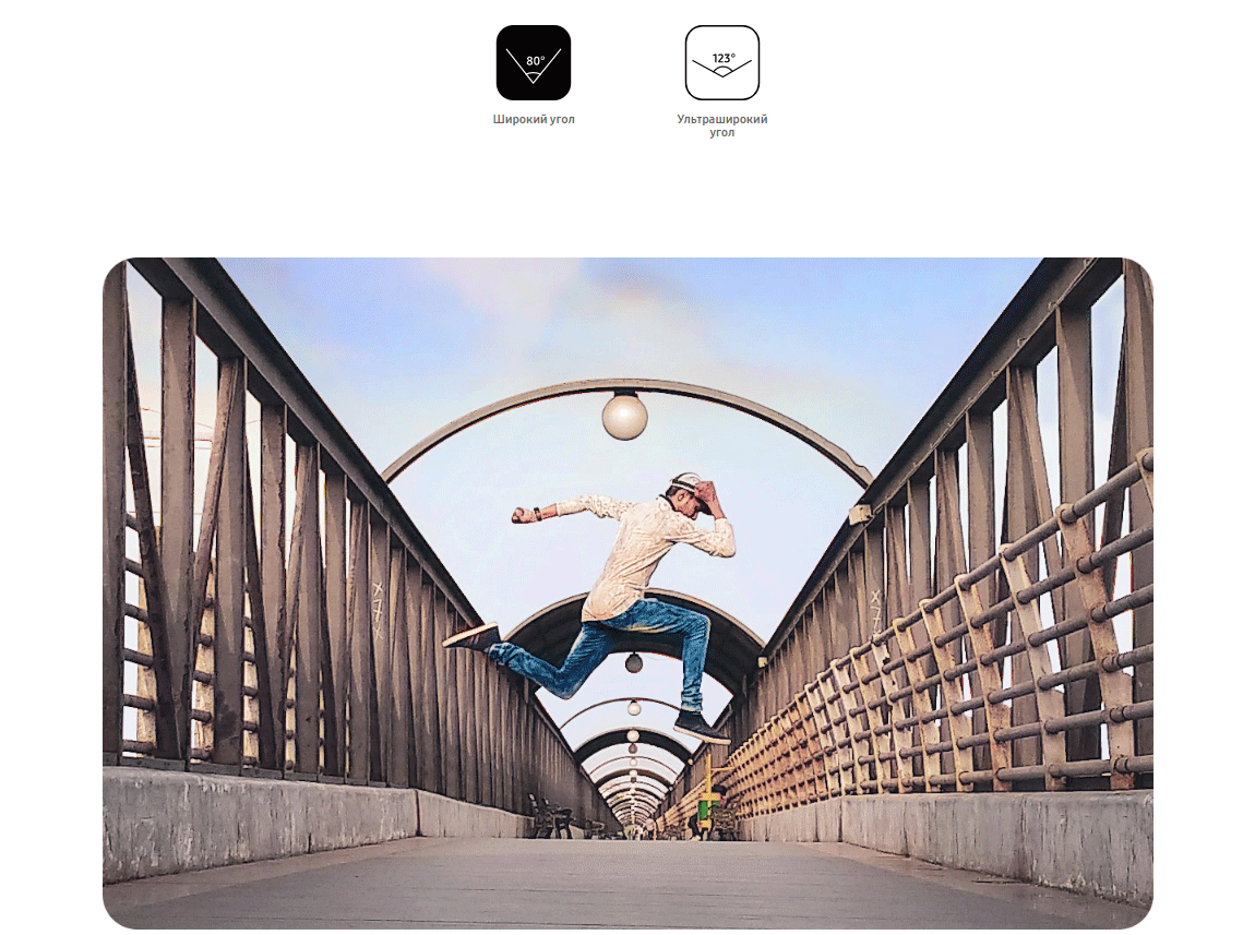 При переходе с основной камеры на ультра широкоугольную обзор увеличивается с 80 до 123 градусов, причем в настройках предлагается компенсировать возникающие по краям искажения.