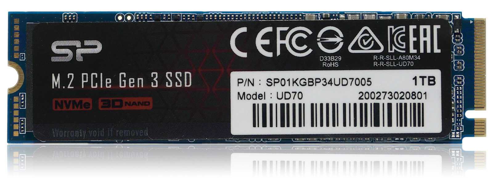 Внешний вид Silicon Power UD70 ничем не отличается от аналогичных устройств типа M.2 2280. Накопитель не оснащён радиатором охлаждения, поэтому имеет малую толщину — всего 3,5 мм. Это расширяет список совместимости не только на настольные компьютеры, но и на ноутбуки, и на многие ультракомпактные ПК типа Intel NUC.