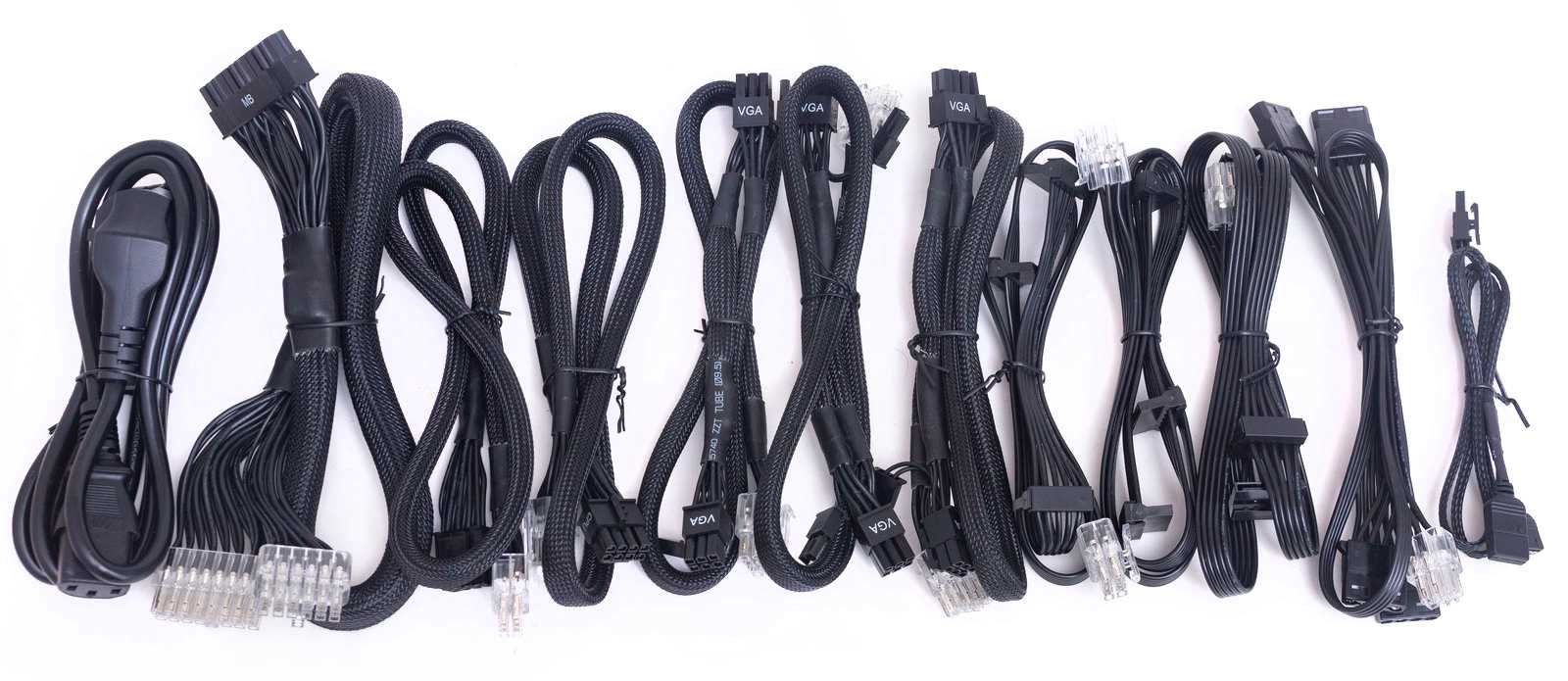 Всего в комплекте 11 модульных кабелей и сетевой шнур.