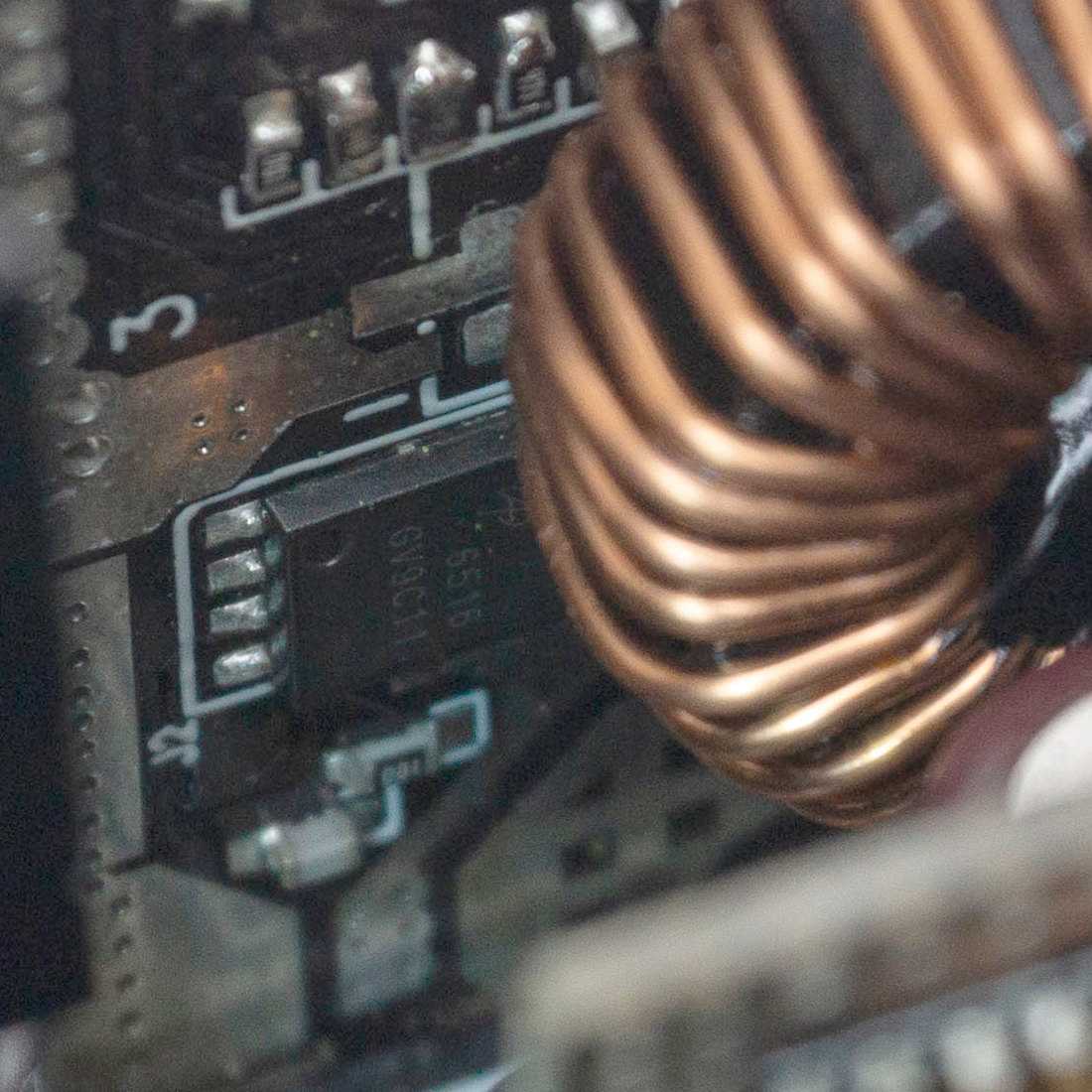 Контроллер SF29603 находится рядом с дросселем APFC на вертикальной плате.