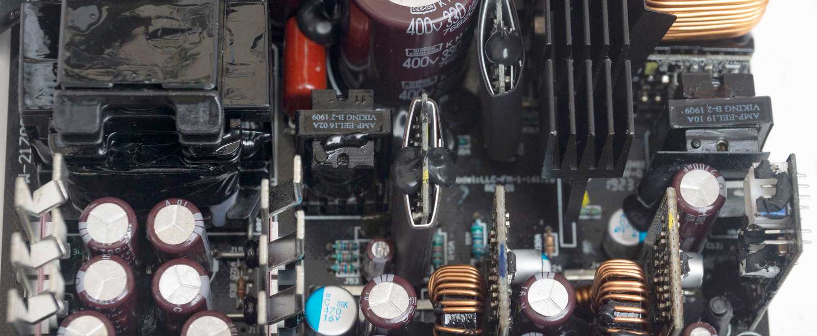 Фильтрующие конденсаторы выходных напряжений — CapXon серии KF с рабочей температурой до 105 градусов Цельсия. В нескольких частях платывстречаются и твердотельные конденсаторы.
