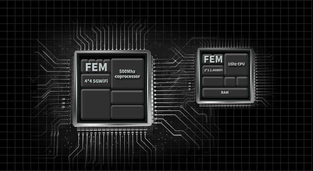 Tenda AC23 работает на системах от компании Realtek. В частности: основным SoC является двухъядерный процессор Realtek RTL8197FH-VG с тактовой частотой 1 ГГц, который также включает поддержку диапазона 2,4 ГГц. Микросхема RTL8814BR, в свою очередь, отвечает за 5 ГГц, в которой также размещен сопроцессор с тактовой частотой 500 МГц. Роль этого дополнительного элемента заключается в поддержке RTL8814BR в обработке трафика в диапазоне 5 ГГц.