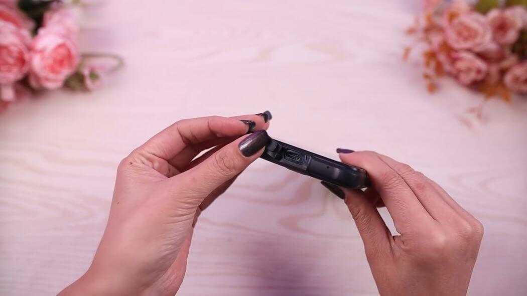 Внизу установлен порт зарядки USB Type-C, защищенный крышкой. Рядом есть отверстие для микрофона.