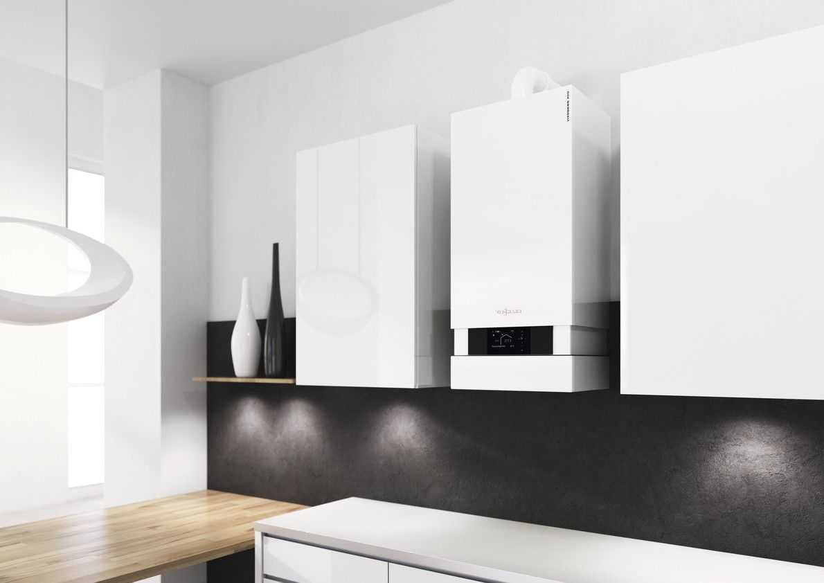 Современные котлы Viessmann имеют стильный дизайн и не требуют сервисного пространства вокруг, для их подключения необходимо минимум коммуникаций. На фото модель Viesmann Vitodens 200-W.