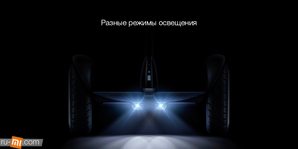 Спереди скутера в сторону дороги светят две мощных светодиодных фары. Дальнобойность 7 метров. Фары светят только при недостаточном освещении, автоматически включаются и выключаются. Сзади тоже есть подсветка: два универсальных световых индикатора, которые работают в разных режимах.