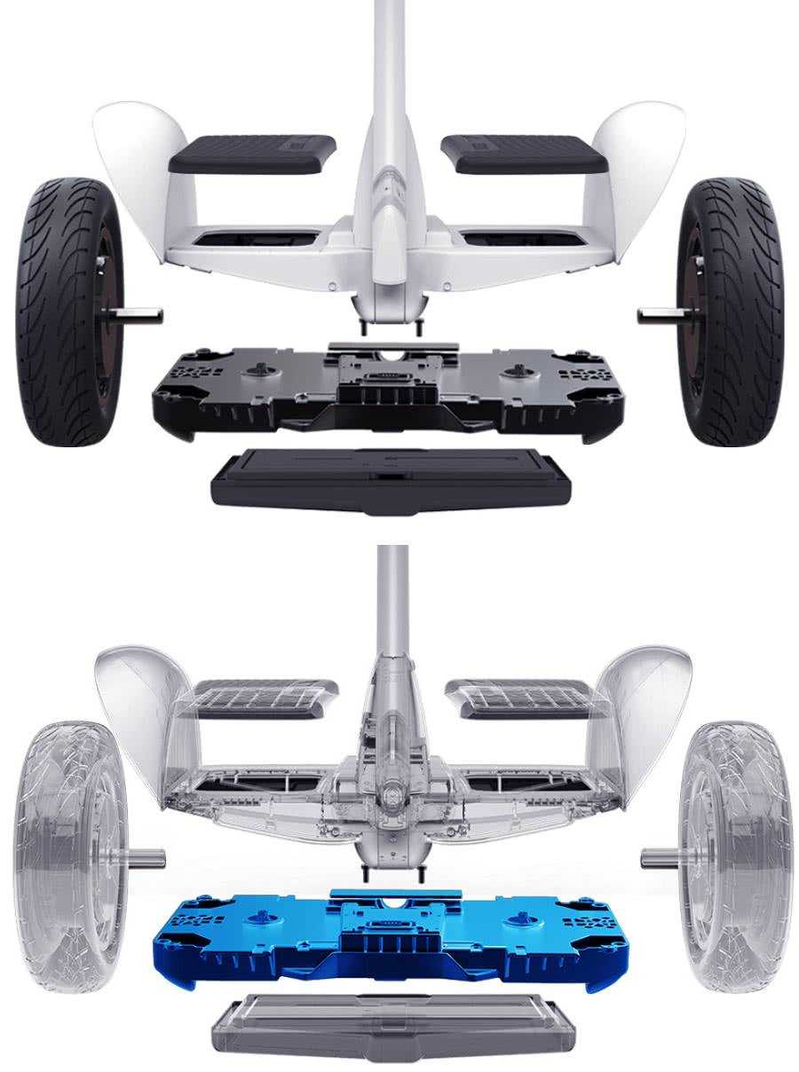 В корпусе гироскутера Xiaomi Ninebot Mini спрятаны два прямоприводных электродвигателя мощностью 700 Вт каждый. По результатам тестов стартовая мощность составляет 2000 Вт, что немало для такого компактного транспортного средства.