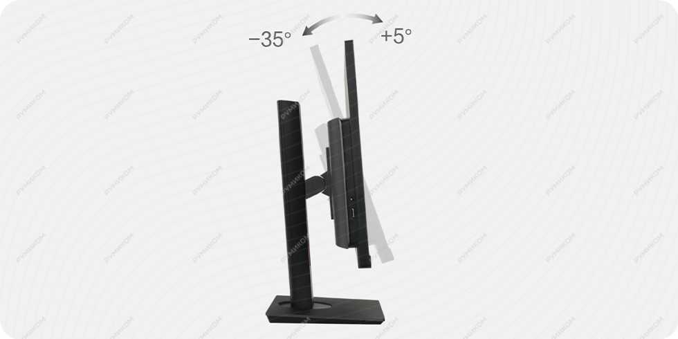 Вертикальный угол наклона можно регулировать в диапазоне от +5° до -35°, чтобы подстроить положение моноблока под конкретное рабочее место и рост.