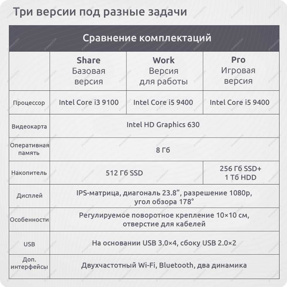 Младшая версия моноблока Ningmei работает на процессоре Intel Core i3-9100. Это 4-ядерный процессор с частотой ядра до 4,2 ГГц. В этой версии моноблок оснащен 8 ГБ оперативной памяти и 512 ГБ встроенной памяти.