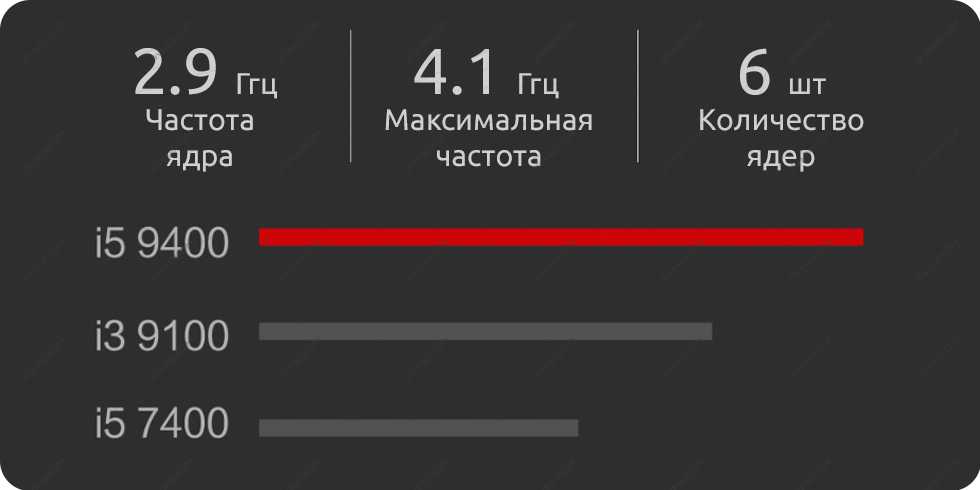 По сравнению с процессором Core i5-7400 производительность возросла на 50%, что позволяет еще лучше работать в режиме многозадачности с самыми разными программами.