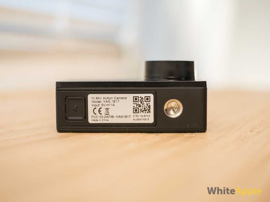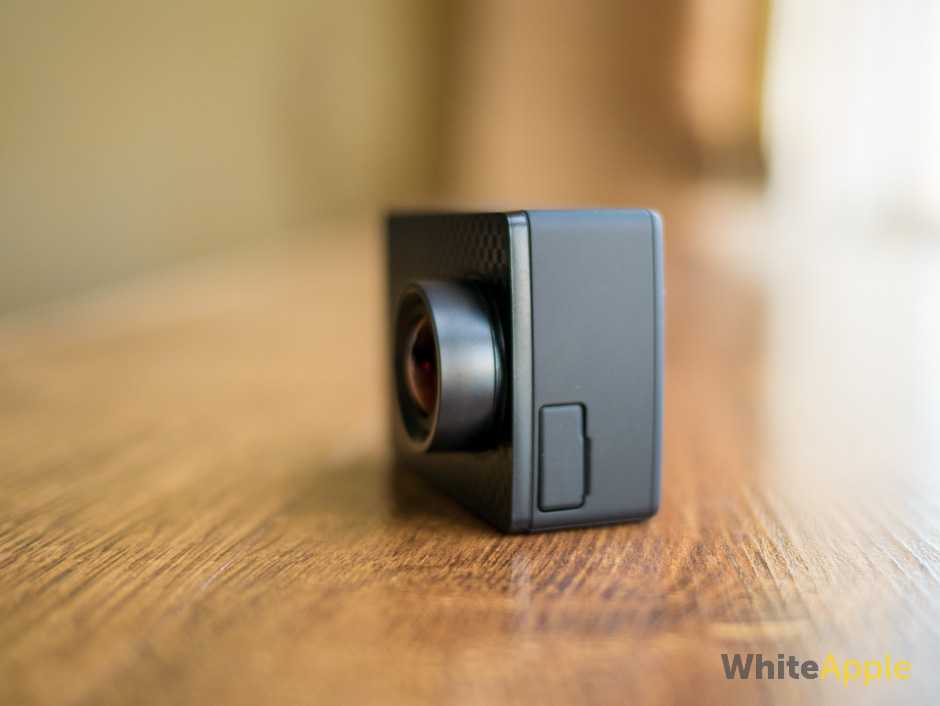 Эстетически, Yi 4K Action, размером со спичечный коробок, обычно гладкий, в любом из трех вариантов цвета: матовый черный, белый и розовое золото. Жесткий пластиковый вид — это правило, для этой камеры. С правой стороны, когда вы смотрите на переднюю часть камеры, находится объектив, который слегка выступает. На нижней стороне, находится крышка для доступа к батарейному отсеку. В этом отсеке установлен литиево-ионный силовой блок, мощностью 1400 мАч, который похож с блоком в 1220 мАч, у GoPro Hero 5.