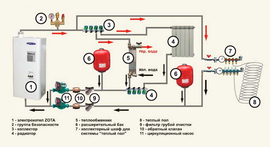 Схема отопления с электрокотлом ZOTA в качестве нагревательного элемента.