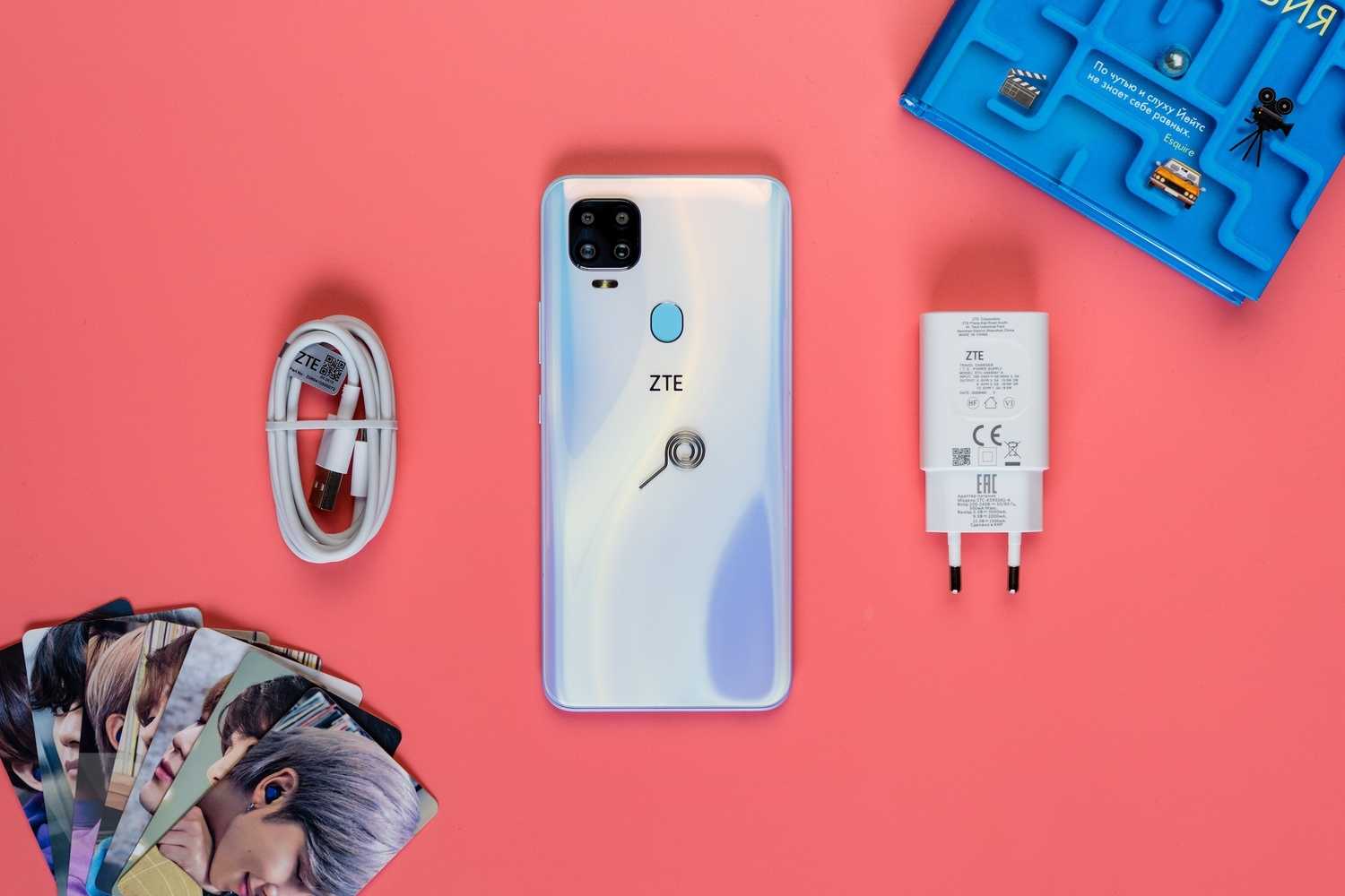 Вместе с ZTE Blade V2020 в коробке лежат адаптер для зарядки, прочный провод Type-C, а также красивая скрепка с инструкцией. Я почувствовал нечто удивительное, когда достал ZTE Blade V2020. Ведь он заворожил меня своим утончённым и классическим дизайном.