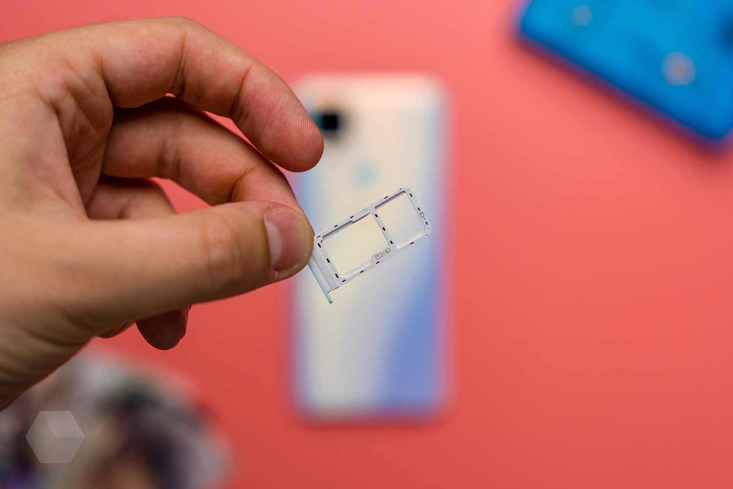 Ещё одна особенность — расположение слота для карт сверху. Обычно производители его куда-то по бокам суют. Слот гибридный, то есть можно вставить либо две nanoSIM, либо одну «симку» и карту памяти. Тут же рядом расположился вспомогательный микрофон.
