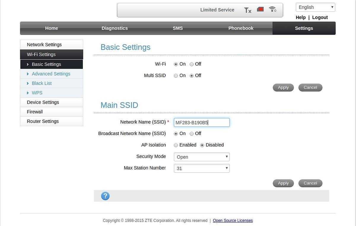 ZTE MF283+ получил WiFi модуль стандарта 802.11 b/g/n (частота 2,4 ГГц). Скорость обмена данными в сети Wi-Fi достигает 300 Мбит/сек. Одновременно к роутеру может быть подключено до 32 клиентов. Радиус действия беспроводной сети достигает 50-70 метров (в зависимости от условий использования). Это позволяет покрыть беспроводной сетью среднестатичтический частный дом, не большой офис, квартиру или любое другое помещение. При использовании маршрутизатора в помещении с толстыми железобетонными перекрытиями радиус действия может быть меньше.
