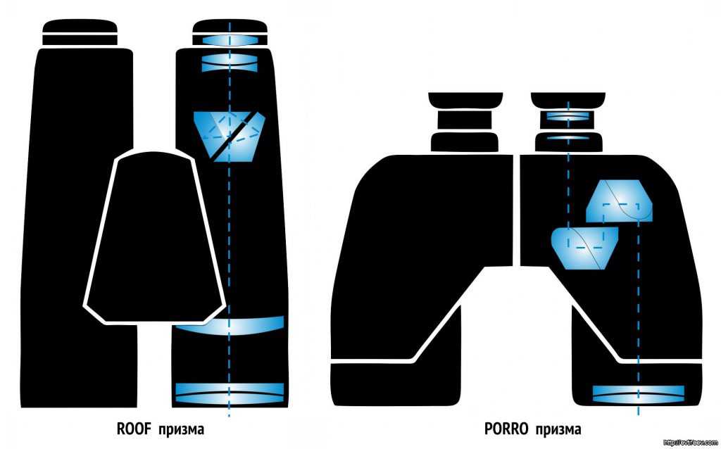На сегодняшний день существует два типа призм для биноклей: ROOF призма и PORRO призма.