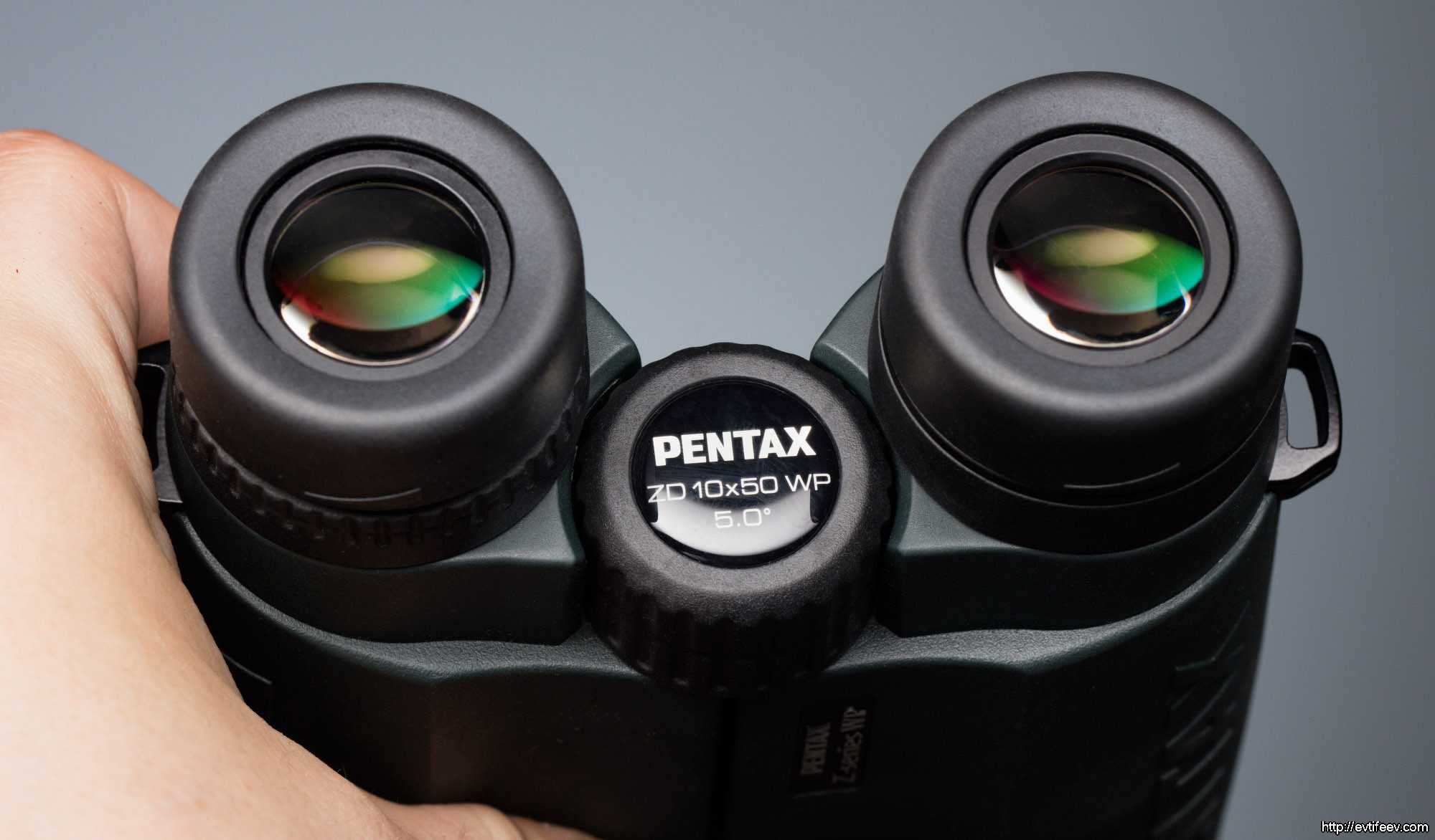 Определяется диаметр выходного зрачка делением диаметра линз на кратность. Так для PENTAX ZD 10×50 WP диаметр выходного зрачка будет 5 мм (50/10), что является неплохим показателем. В бинокль с таким выходным зрачком можно рассчитывать неплохо ориентироваться в сумраке. У PENTAX это не максимальный выходной зрачок т.к. есть модель PENTAX ZD 8×43 ED, например, с выходным зрачком 5,4 мм. Про PENTAX ZD 8×43 ED вы можете почитать в этом обзоре.