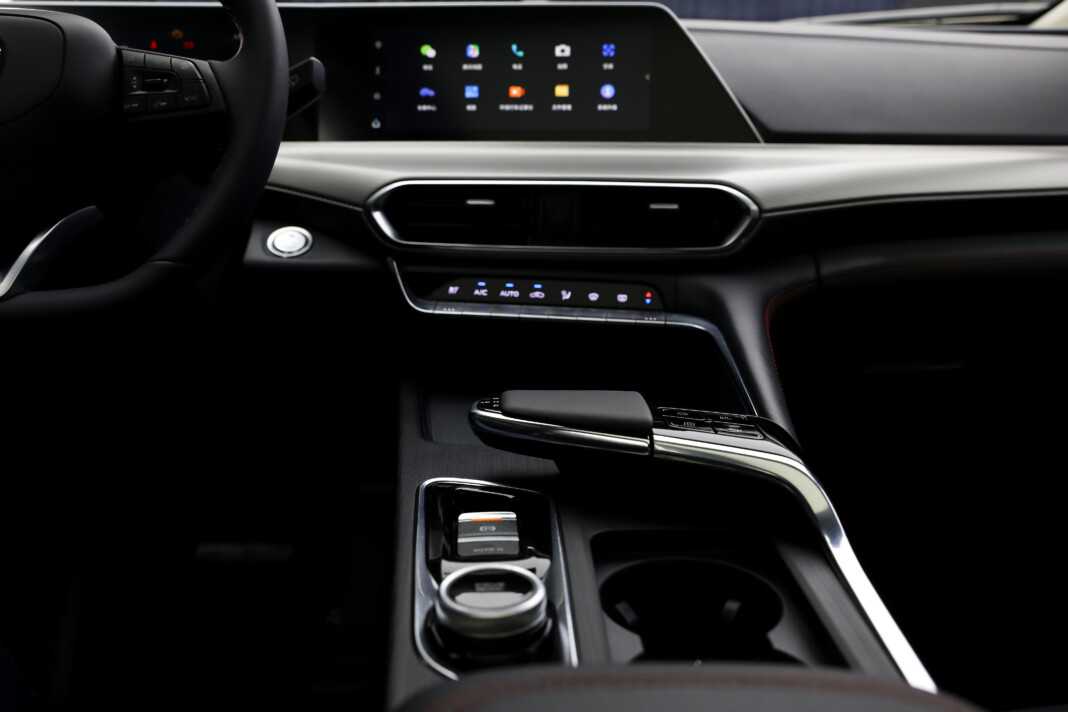 Торпедо автомобиля представляет собой срезанную прямоугольную вставку с трапециевидным дисплеем на сенсорном управлении, а также несколько дефлекторов системы вентиляции и кнопок для работы с климатической системой и важнейшими салонными опциями. Ниже начинается слегка «задранный» вверх тоннель с изящным селектором коробки передач. Также здесь можно обнаружить дюжину физических клавиш и «крутилок», скромный органайзер и довольно комфортный подлокотник с еще одним бардачком внутри.