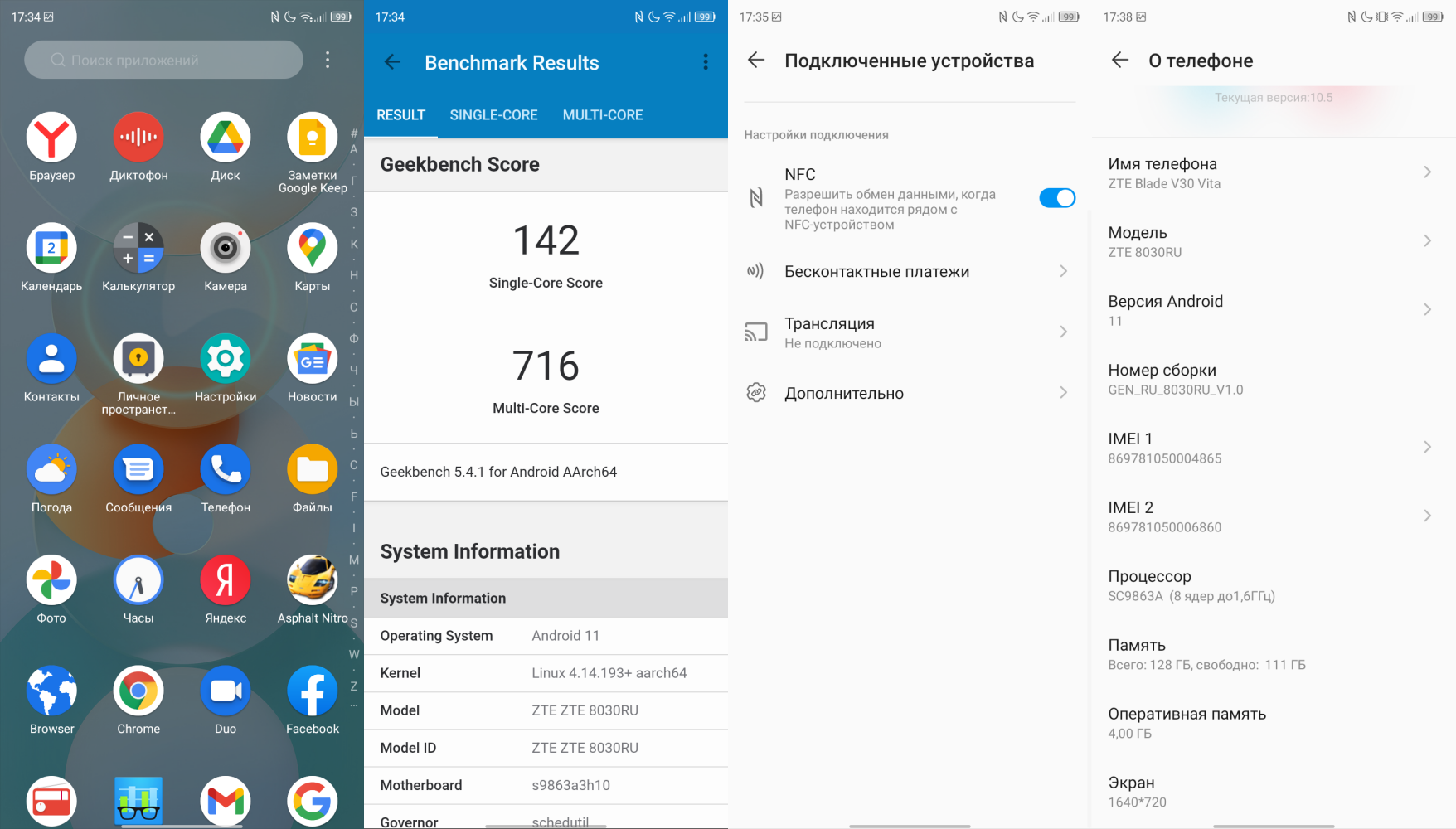 Места для хранения данных на удивление много для бюджетного смартфона: целых 128 ГБ, а оперативной памяти 4 ГБ — жить можно, хотя про требовательные шутеры лучше сразу забыть.