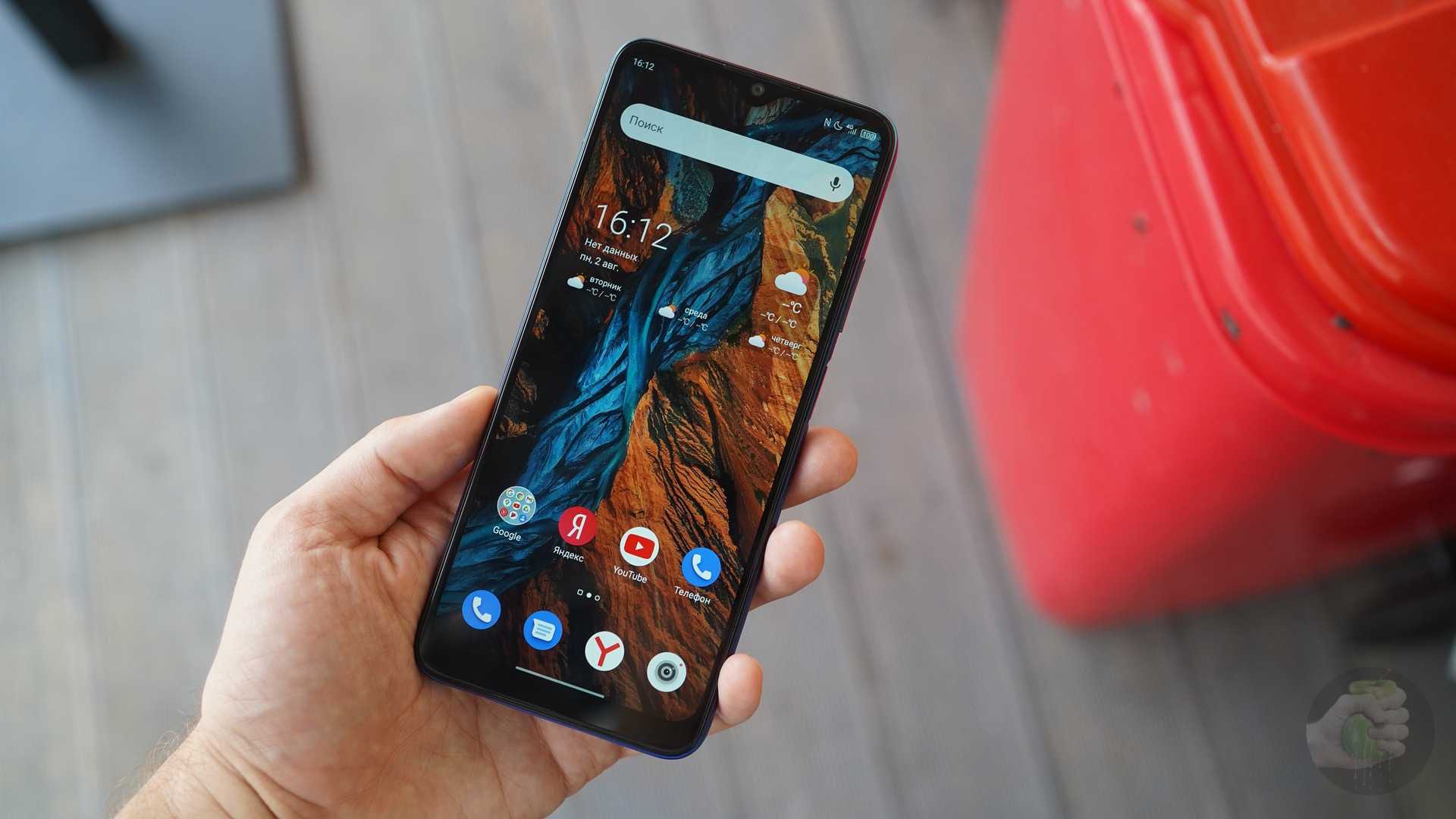 Смартфон получился достаточно большим: ему достался крупный дисплей, поэтому и корпус внушительных размеров. Как говорится, «лопата», но по меркам класса габариты приемлемые. В кармане телефон всегда ощущается, так что летом в тонких шортах или брюках может выпирать — всё-таки весит он 210 грамм.
