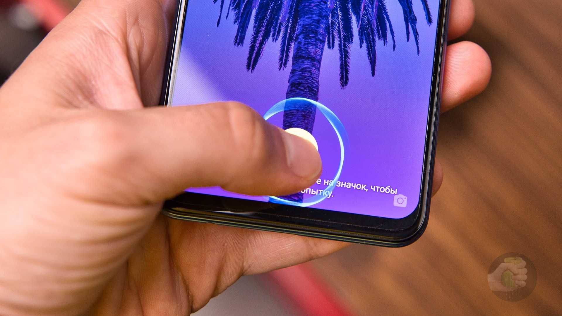 Сканер отпечатков расположен в экране, оптический сенсор работает без тормозов и безошибочно, пользоваться им удобно.