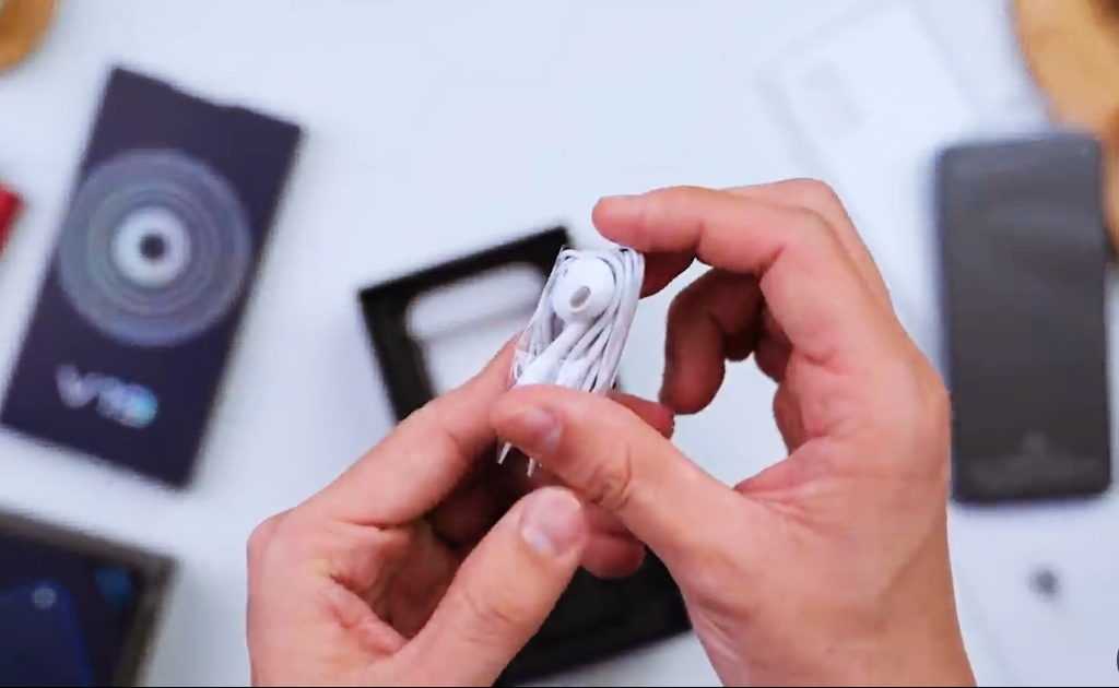 Коробка Vivo V19 уже выглядит многообещающе. Выполнена упаковка в темно-синих тонах, с характерным глянцем, как и на крышке телефона. Оттуда мы впервые узнаем об уникальных функциях смартфона, например: ночное селфи, Quick Charge.