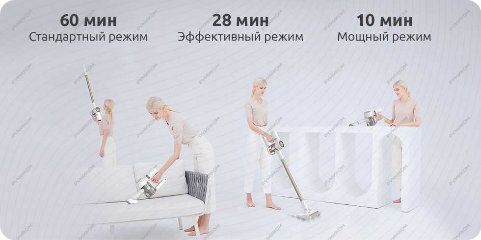 - Эко — до 60 минут работы, для продолжительной уборки;