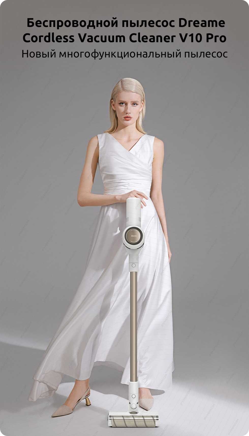 Xiaomi Dreame V10 Pro — мощный и компактный беспроводной пылесос с впечатляющей силой всасывания и эффективной системой фильтрации. Скорость вращения двигателя составляет 100 000 об/мин, что обеспечивает силу всасывания до 22000 Па. Модель оснащена светодиодным дисплеем, что делает использование устройства особенно простым.