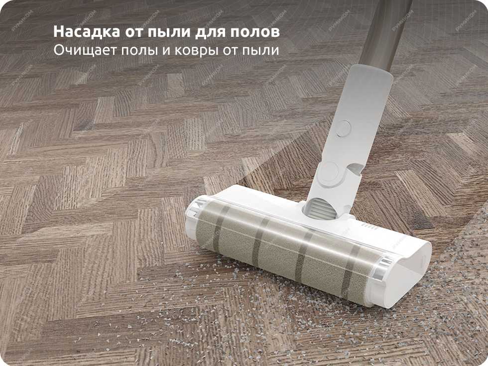 И в самом корпусе пылесоса, и в половой щетке есть отдельные электродвигатели. Двигатель в щетке приводит в движение большой чистящий ролик, который сметает с пола пыль и благодаря высокому крутящему моменту удаляет даже сложные загрязнения.