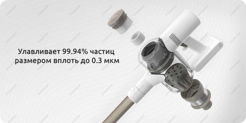 В пылесосе Dreame реализована 5-ступенчатая система тончайшей фильтрации, которая с высочайшей эффективностью улавливает даже мелкие частицы размером до 0.3 мкм. Эффективность очистки в 99.94% гарантирует, что пылесос будет выдувать только чистый воздух без загрязнений.