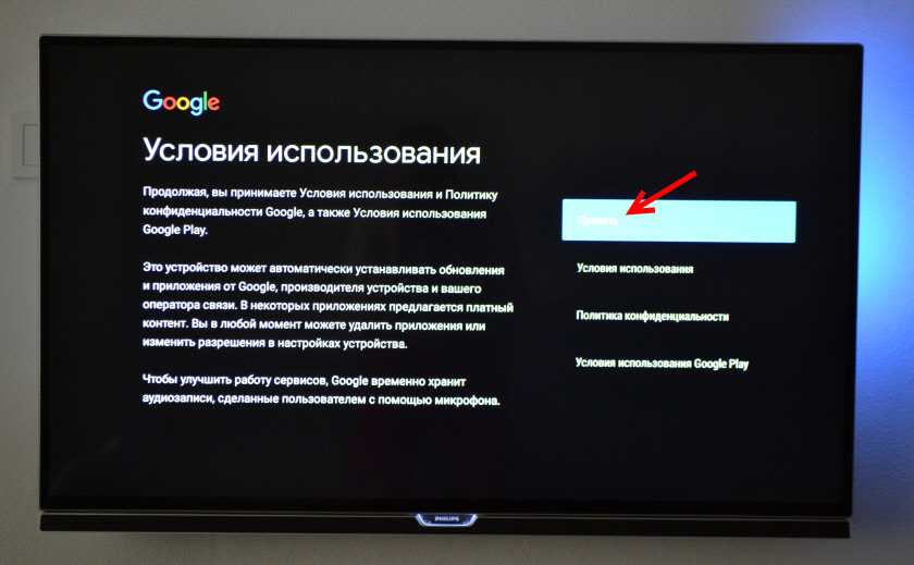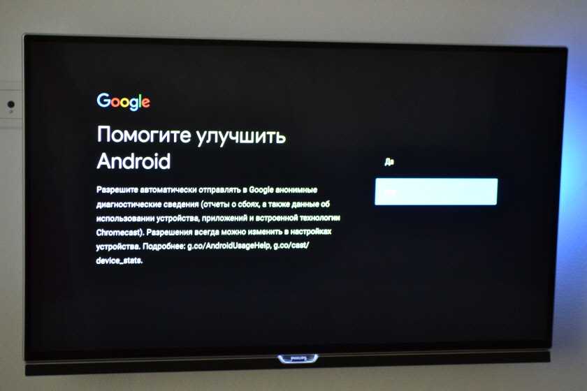 И разрешаем, или запрещаем Смарт приставке отправлять данные в Google, которые будут помогать компании улучшать Android.