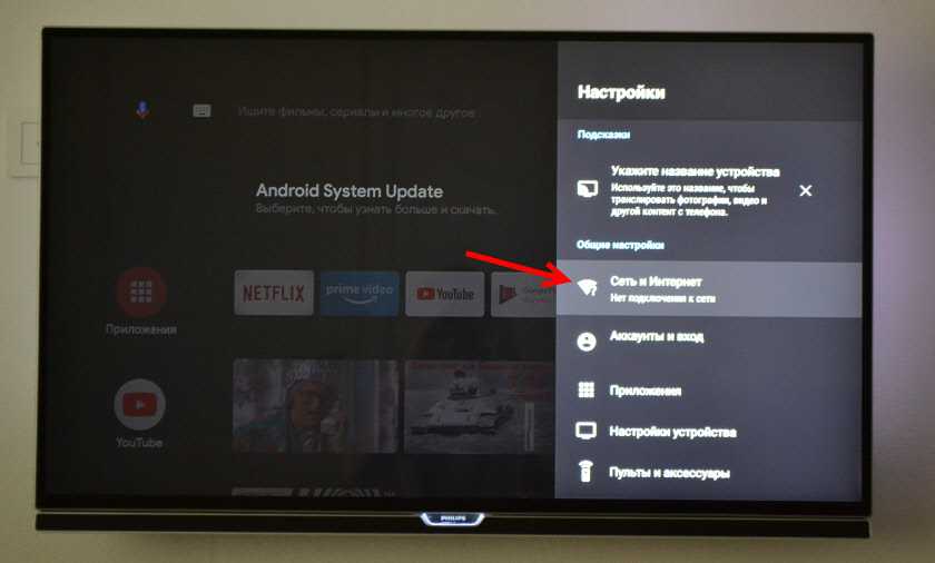 Подключить приставку к беспроводной сети можно в разделе «Сеть и Интернет».