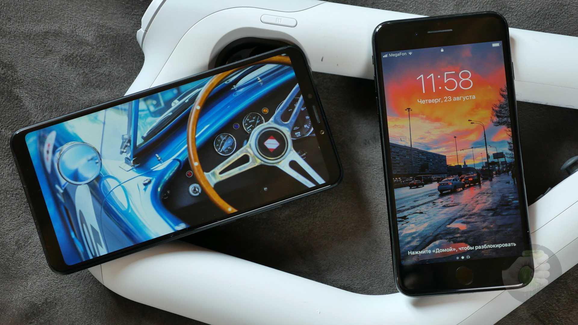 Mi Max 3 на фоне iPhone 7 Plus