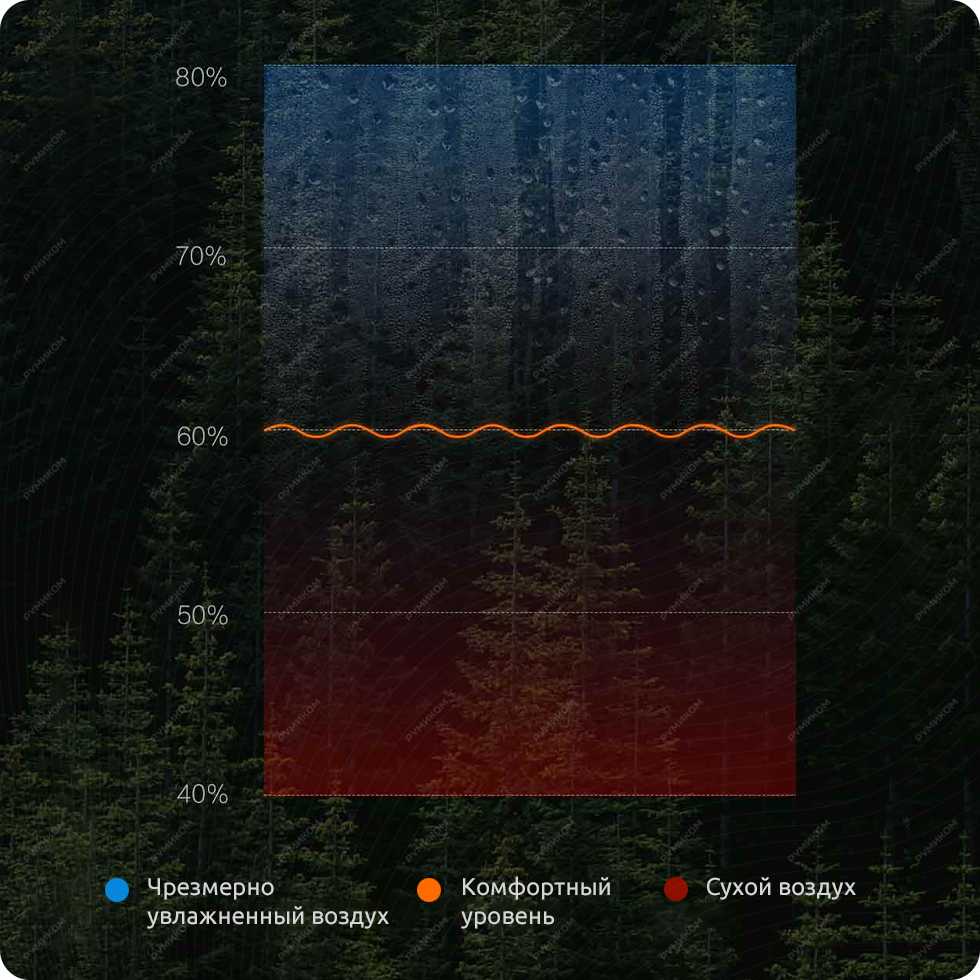 Исследования показали, что весной средняя влажность в условиях города составляет примерно 58%, этот же уровень является наиболее комфортным для организма человека. Работая в режиме поддержания постоянного уровня влажности, умный увлажнитель Mijia может поддерживать влажность на уровне 60%, формируя оптимальный микроклимат в помещении.