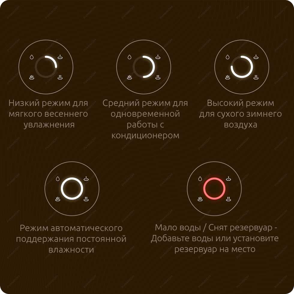 Индикаторное кольцо служит функциональным украшением корпуса увлажнителя, каждый его сегмент отображает разное состояние работы и объем подачи, быстро сообщая Вам все самые необходимые данные. Настроить работу увлажнителя можно простыми прикосновениями, чтобы каждый день находиться в самом комфортном климате.