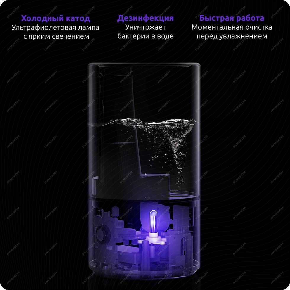 Однако умный увлажнитель Mijia перед распылением проводит воду через зону дезинфекции ультрафиолетом, моментально очищая воду от опасных загрязнений. Уже после очистки чистая влага распыляется в воздухе и безопасным образом повышает уровень влаги.
