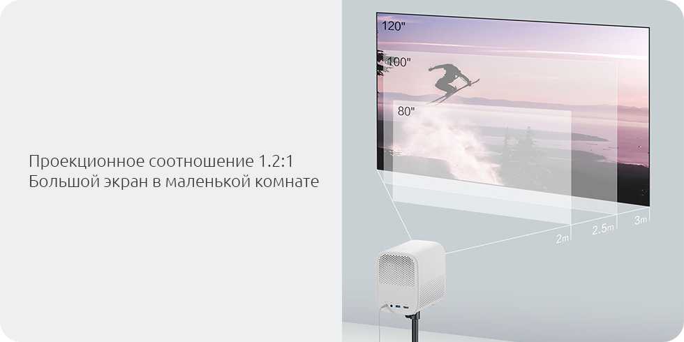 Проектор идеально подходит даже для маленьких квартир. Регулируйте расстояние между проектором и стеной, чтобы менять размер изображения в пределах 40-200 дюймов.