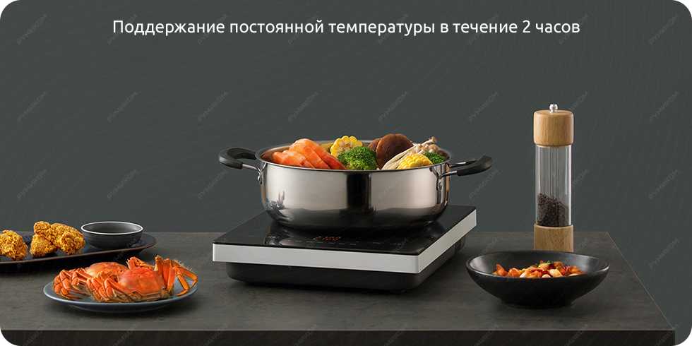 В плитке есть умный режим поддержания постоянной температуры, который умеет в течение 2 часов поддерживать постоянную температуру продуктов, используя лишь 200 Вт мощности. Эта функция может пригодиться не только после приготовления, но и во время застольных посиделок большой компанией.