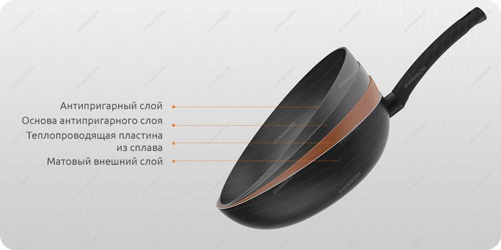 Кроме основы из сплава толщиной 2.5 мм, сковорода имеет несколько стойких слоев покрытия, придающих ей прочность и долговечность.