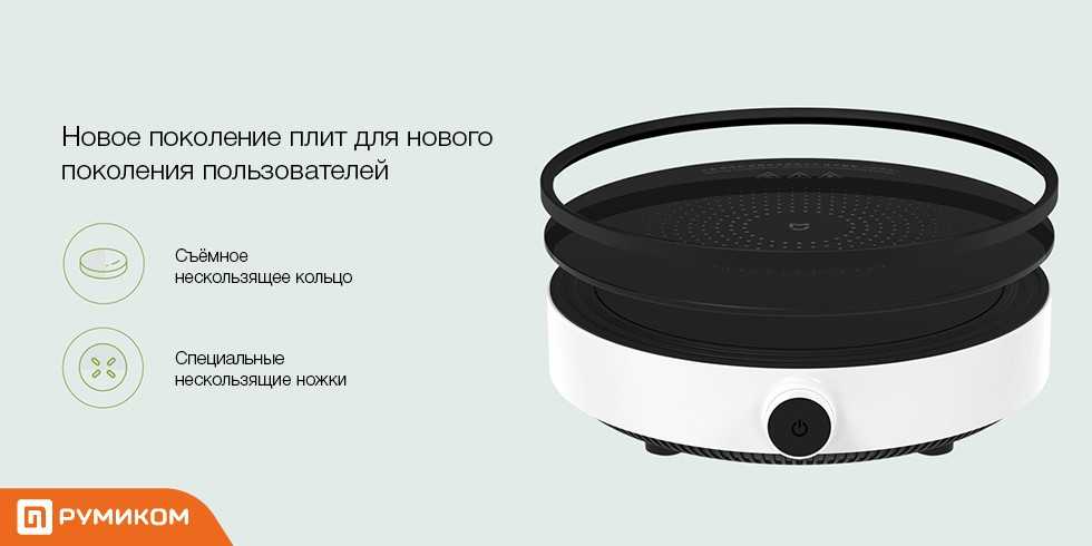 На поверхности плитки имеется особое устойчивое к температуре нескользящее силиконовое кольцо, не требующее особого ухода и обеспечивающее посуде устойчивое положение.