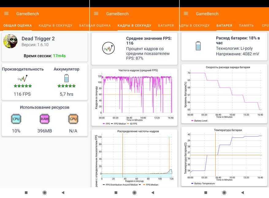 Проверим? Как всегда воспользуюсь помощью геймерского бенчмарка Gamebench. Популярный шутер Dead Trigger 2 вышел уже давно, но зато он позволяет смело выставить настройки графики на максимальные и частоту кадров на 120.