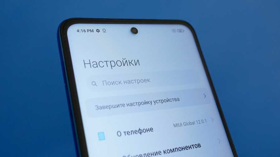 Практически на стыке верхнего торца корпуса с защитным стеклом у Poco X3 NFC предусмотрена вытянутая решетка «разговорного» динамика, за которой прячется еще и индикатор зарядки/уведомлений. Наличие подобного светодиода в смартфоне сегодня кажется столь же необычным, как когда-то его отсутствие. Впрочем, в «Расширенных настройках» можно отключить не только индикацию зарядки, но и световую сигнализацию о получении уведомлений. Чуть ниже решетки динамика, в круглом вырезе экрана свое место занял объектив фронтальной камеры.