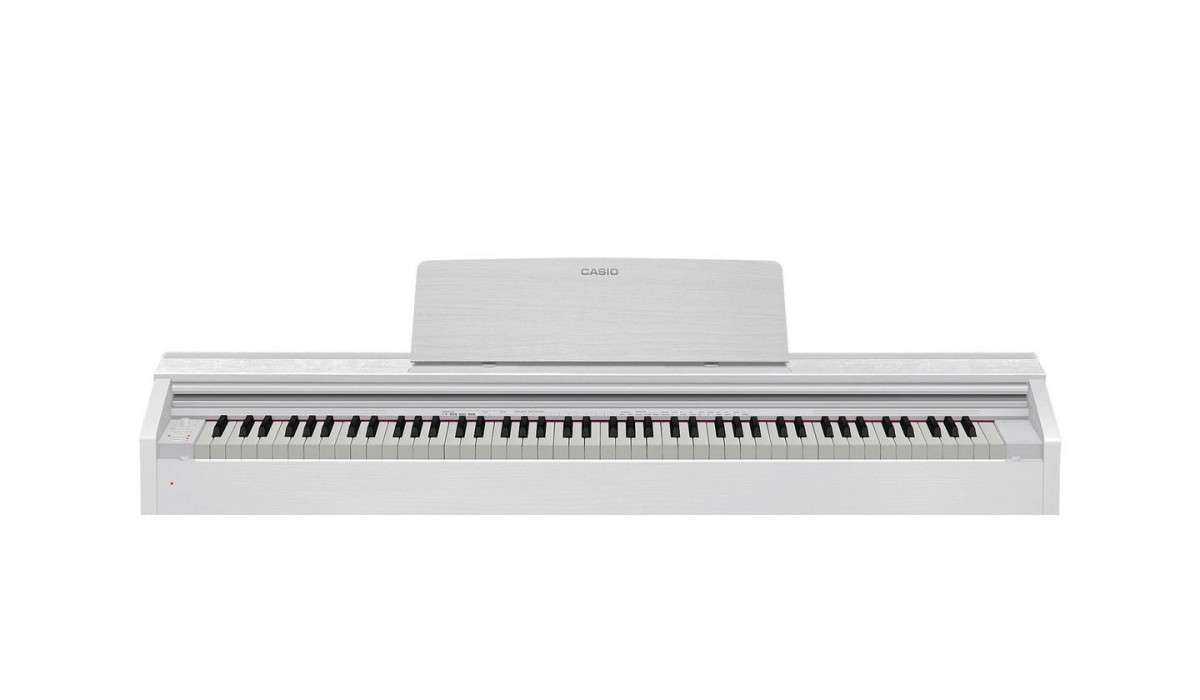 Цифровое фортепиано Casio Privia PX-870WE поддерживает технологию AiR Sound, которая дает возможность получить многомерный звук, и оснащено мощной акустической системой. Цифровое пианино отличается наличием симуляции акустических эффектов, а также набором цифровых эффектов, что наряду с открывающейся верхней крышкой позволит демонстрировать уникальные нюансы совершенного звучания музыкальных композиций. Модель предусматривает наличие 88 клавиш и выполнена в белом корпусе. Casio Privia PX-870WE поддерживает 19 тембров, 256 позиций полифонии и обладает мощностью общей 40 Вт. Особенность фортепиано в возможности подключения USB-накопителей и совместимости с мобильными устройствами. Вы сможете осуществлять запись музыки на носители или передавать их на свои смартфоны. Это позволит достичь комфорта во время работы с цифровым пианино. USB-порт позволит подключать компьютеры.