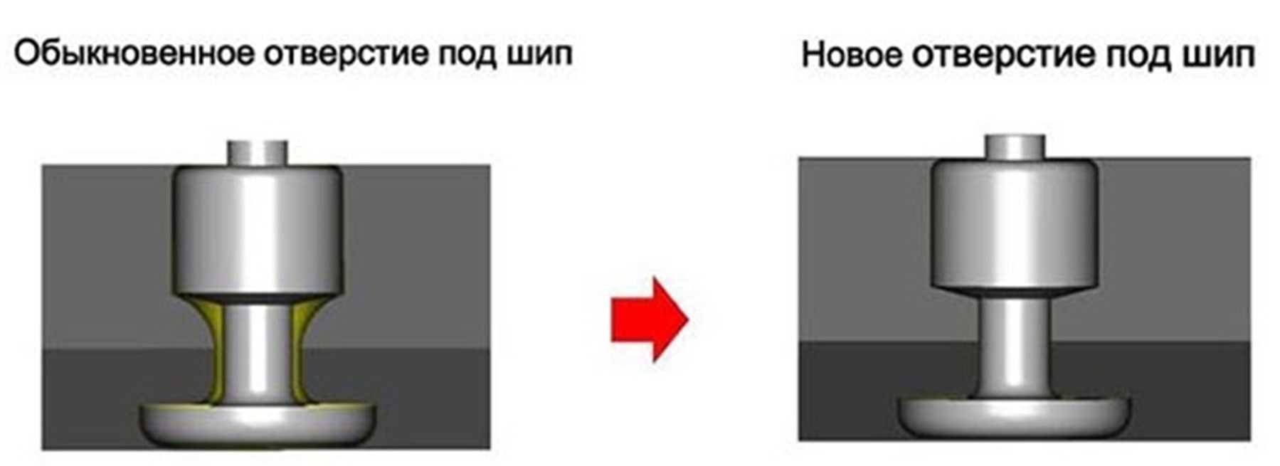 Для удержания шипов в резине применены отверстия новой формы. Согласно заверениям разработчиков они более надежно выполняют возложенные на них функции. В новом типе отверстий уменьшен зазор между шипом и резиновыми стенками.