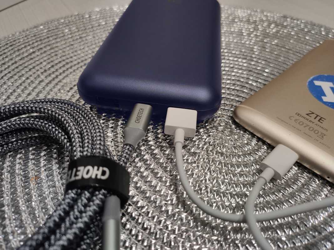Для зарядки доступно 3 выхода, один из которых является и входом: пара USB с поддержкой Qualcomm Quick Charge 3.0 и USB Type C с поддержкой PD. Одновременно может работать любое количество портов.