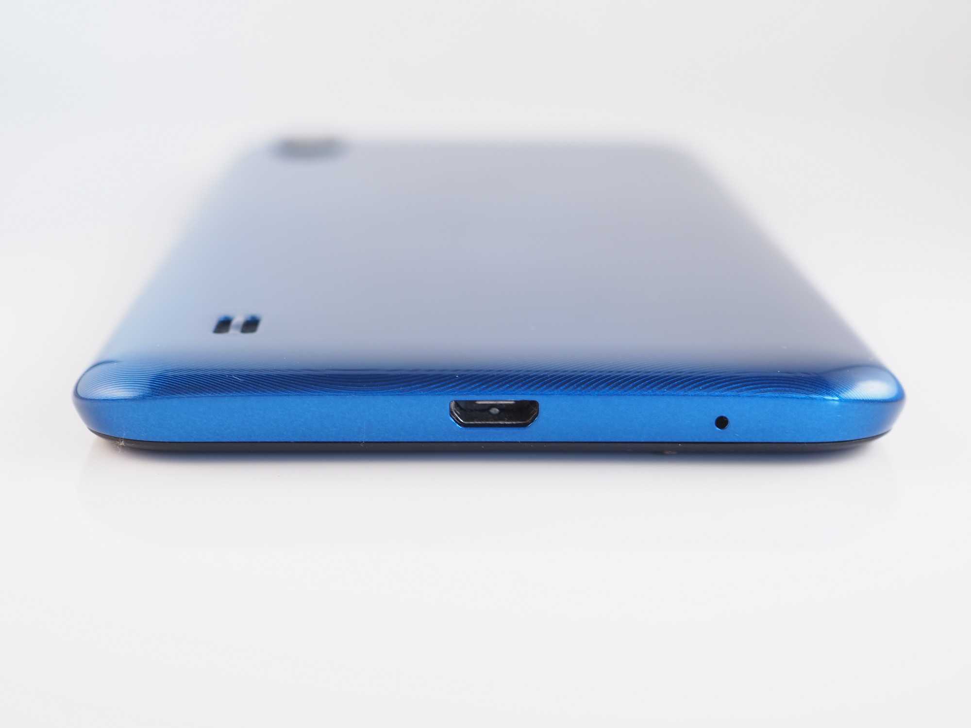 Задняя панель выполнена из глянцевого пластика синего цвета с текстурированным рисунком. Также ZTE Blade A5 2020 доступен в черном и зеленом цвете. На задней панели расположился блок из сдвоенной камеры со вспышкой и прорезь основного динамика. Задняя грань скругленная, за счет чего основной динамик хорошо слышно, даже если смартфон лежит на задней панели. ZTE Blade A5 2020 достаточно компактный смартфон, и он отлично лежит в ладони — не выскальзывает и не вызывает трудностей в управлении одной рукой. Но стоит заметить, что пластик задней панели достаточно маркий, и, если на синем цвете отпечатки пальцев не бросаются в глаза, то черный цвет не такой практичный, и на нем любой мусор и следы рук будут отчетливо выражены.